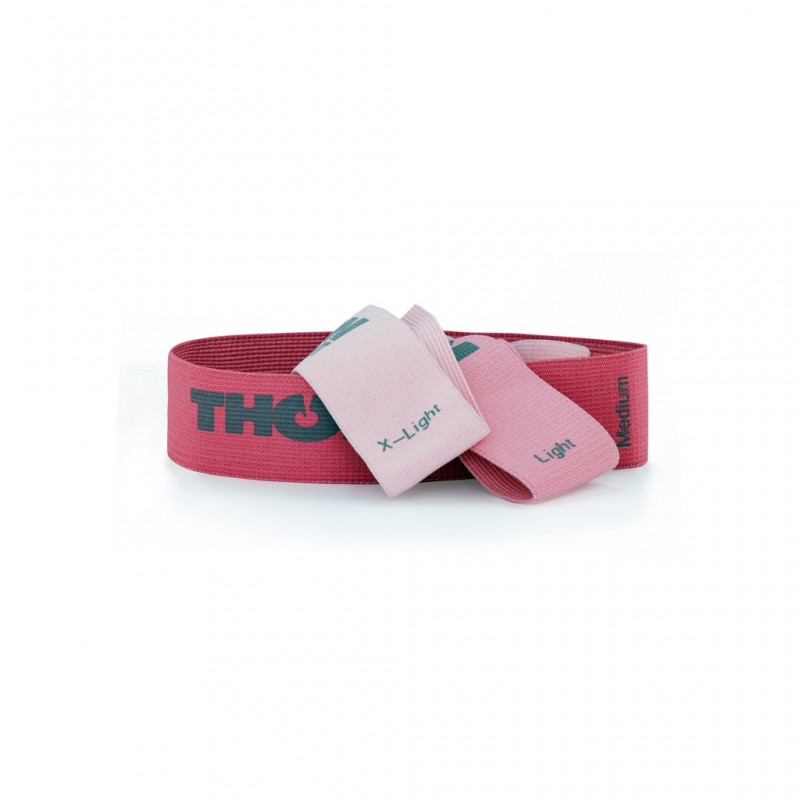 Sada textilních dámských odporových bandáží THORN + se skládá ze 3 různých růžových odporových gum s různou roztažitelností a odolností: EXTRA LIGHT, LIGHT a MEDIUM.