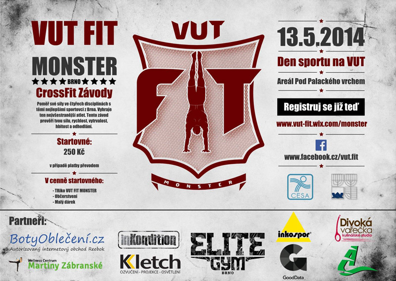 V rámci dne sportu (13.5.2014) na VUT proběhnou crossfitové závody VUT FIT MONSTER. Je to závod jednotlivců kombinující fitness aktivity napříč spektrem gymnastiky, atletiky, silových a obratnostních dovedností. Je určen pro všechny sportovní nadšence funkčních tréninků, bootcampů a kondičního posilování.
