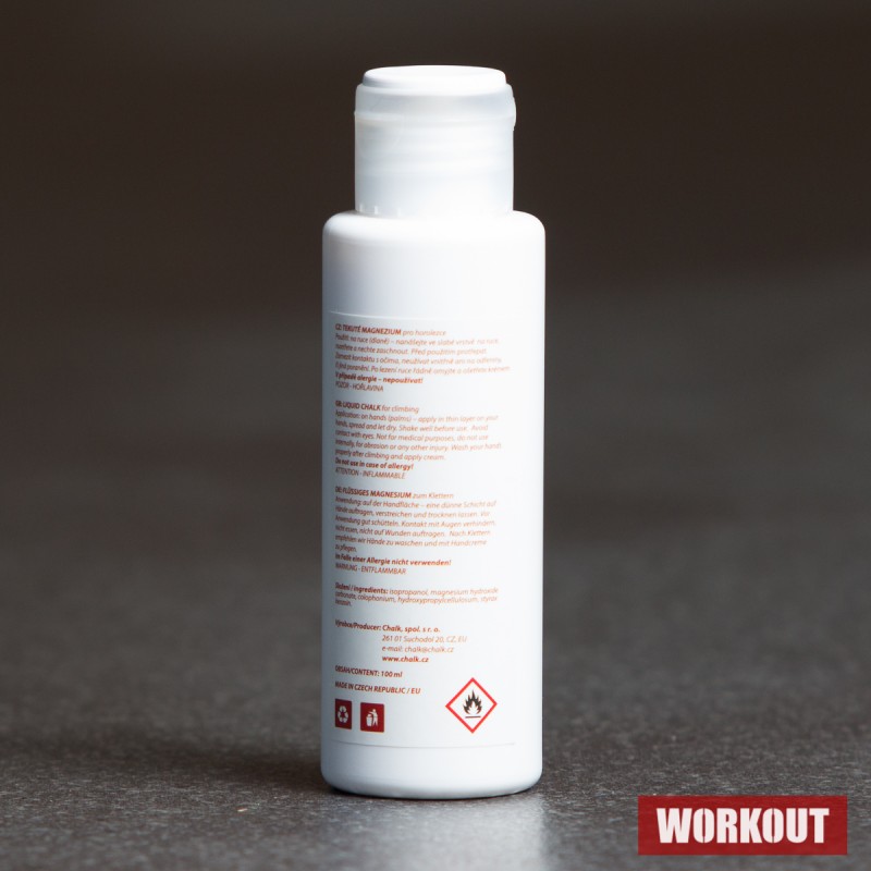 Kvalitní tekuté magnezium Chalk LIQUID 100 ml českého výrobce poskytuje řadu výhod oproti práškovému. Stačí rozetřít malé množství a vaše ruce jsou po chvilce perfektně suché. Ideální pro použití na umělých stěnách, hrazdě, při vzpírání nebo boulderingu.