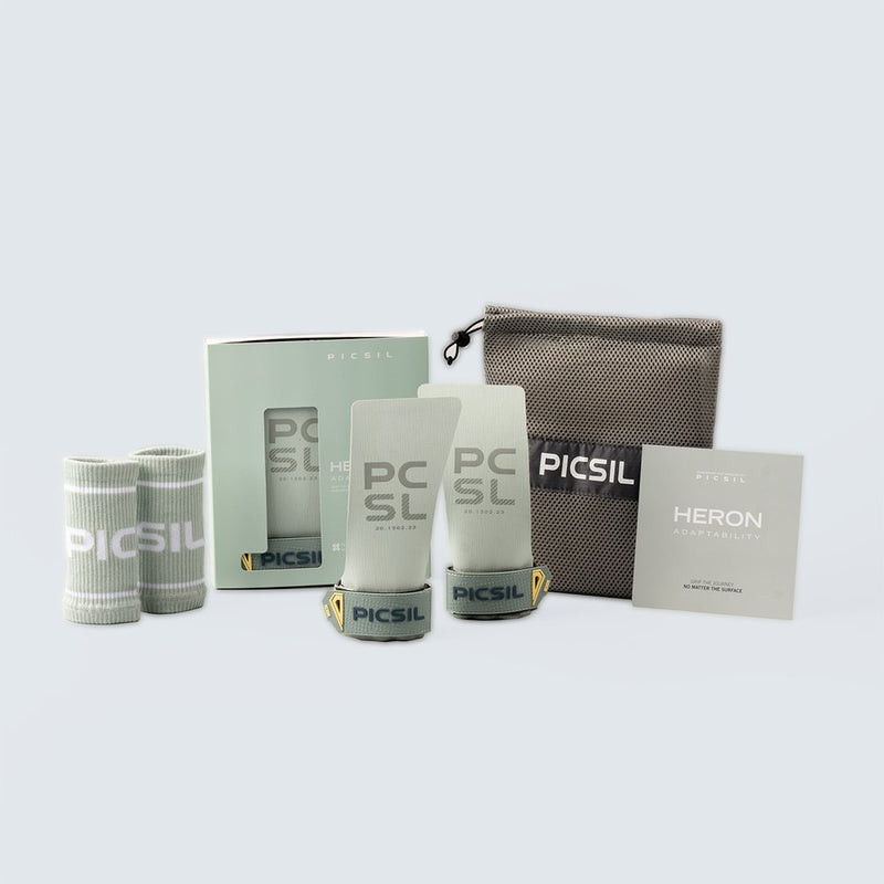 Nabízíme hybridní úchop díky inovativní PU tkanině a speciální struktuře. Heron gripy poskytují pevný a bezpečný stisk. Jsou navrženy tak, aby dokázaly fungovat na jakémkoli povrchu, ať už je drsný nebo hladký, s magnesiem či bez něj a vždy nabízí naprostou kontrolu při každém pohybu.