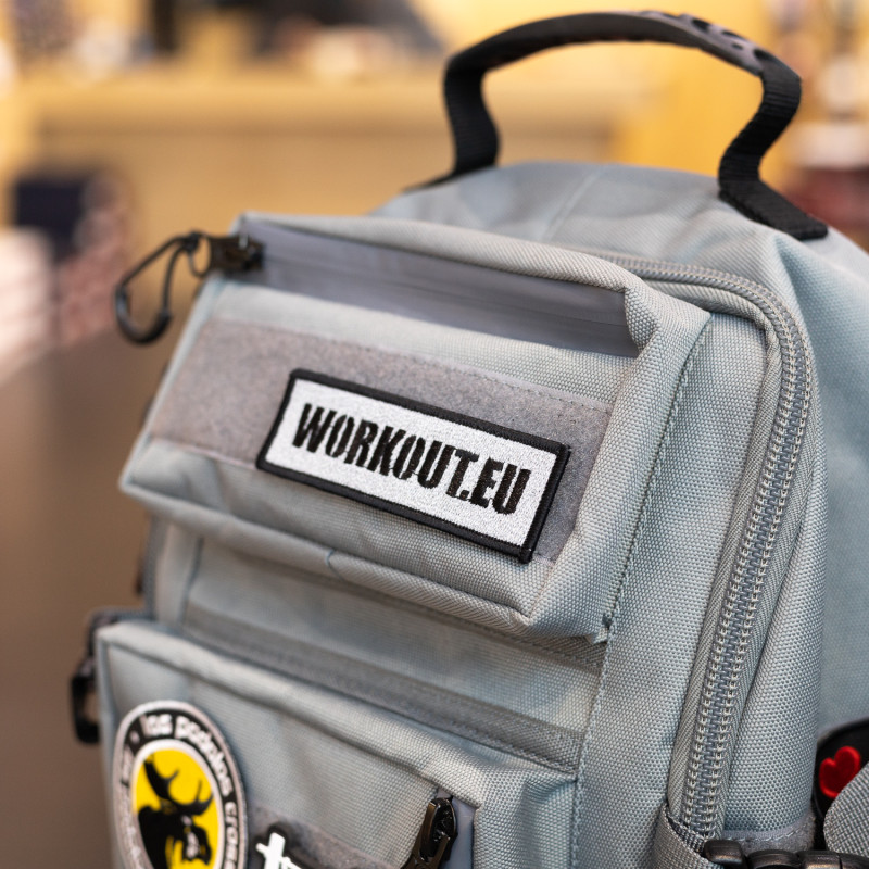 Reflexní nášivka s suchým zipem na druhé straně, s logem WORKOUT.EU.