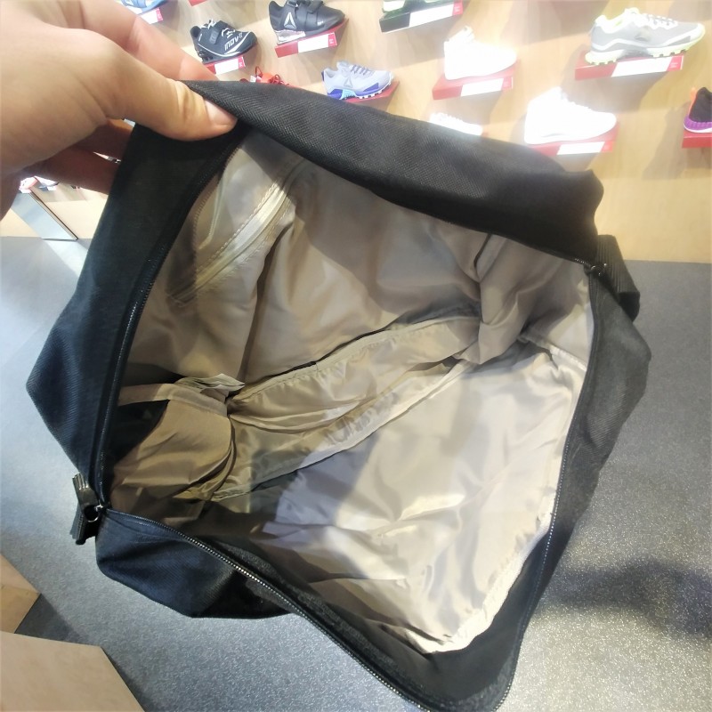 Černá taška s popruhem přes rameno a šedivým logem adidas.